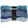 Broderigarn af 6 tråde i rigtig fin kvalitet - 100% merceriseret bomuld Sortiment med 6 matchende blålige farver.